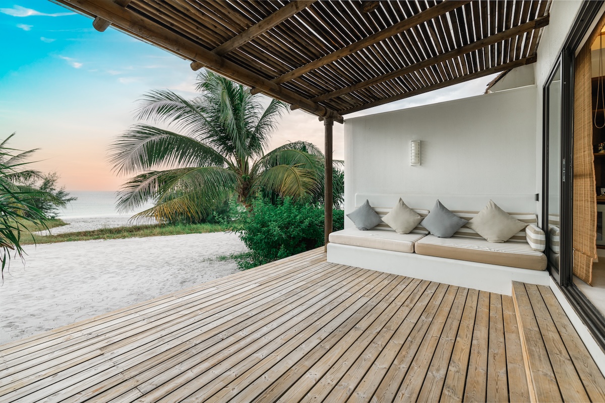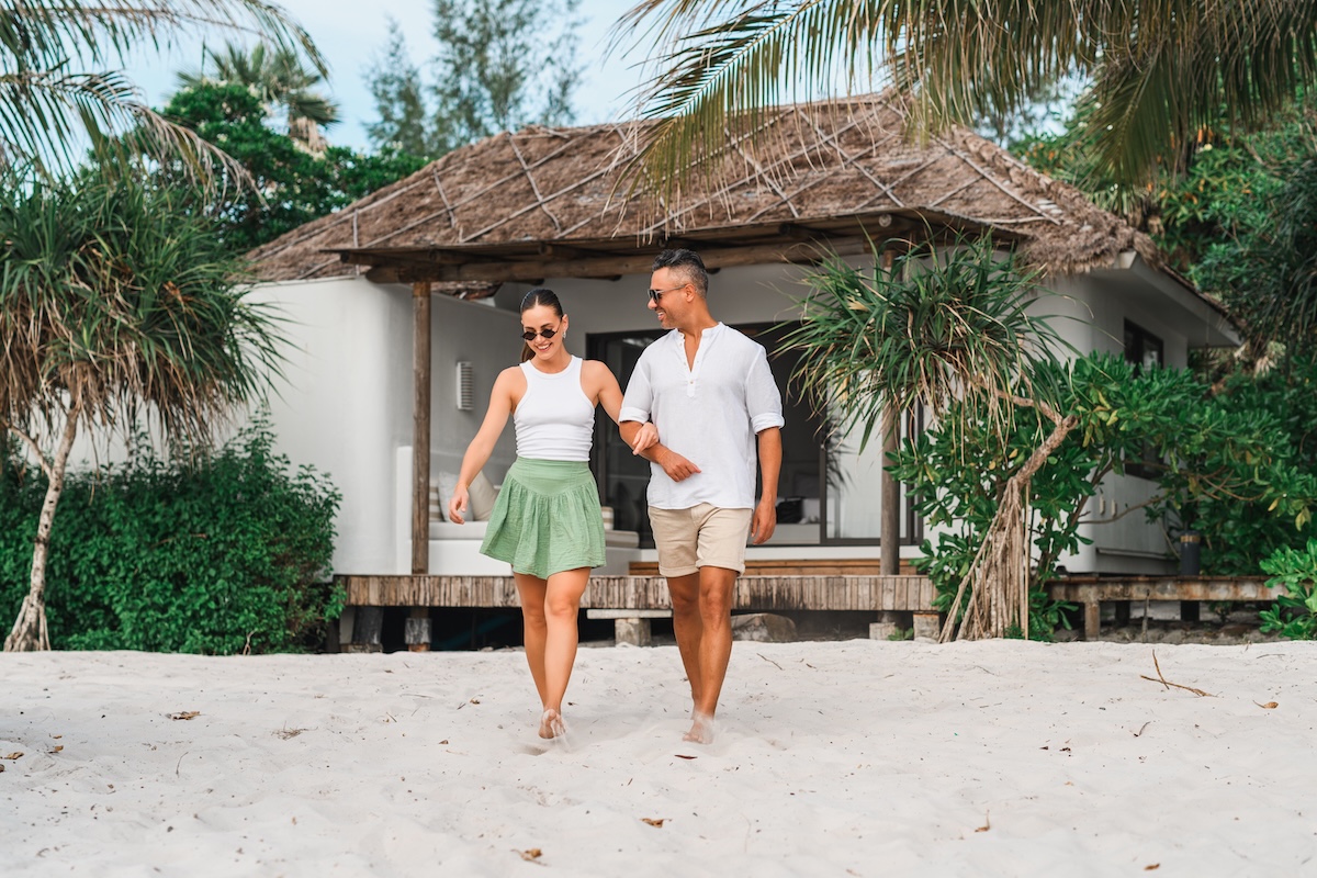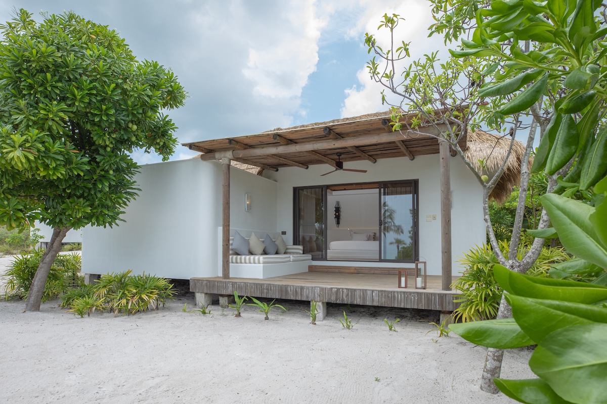 The Beachfront Villa offer an ocean view with direct access to the soft, white sandy beach. They feature a spacious bedroom and bathroom with indoor and outdoor rain showers, a sofa, and an outdoor day-bed area. The rooms are cool and contemporary, equipped with all the latest amenities.