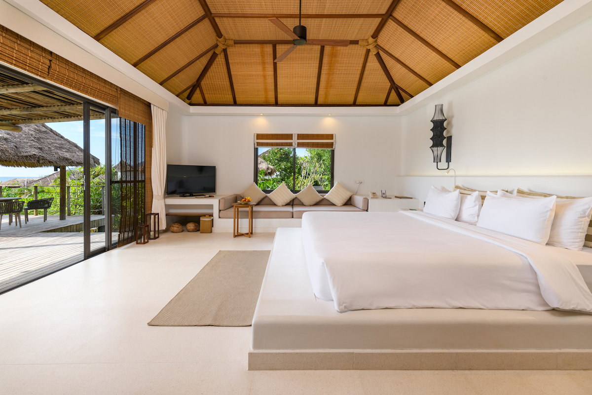 Offering enhanced privacy and generous living space, the Deluxe Pool Villas feature a private swimming pool and expanded outdoor areas. Each villa includes one bedroom, a spacious bathroom with indoor and outdoor rain showers plus a bathtub, a sofa area, a shaded outdoor sala, and a furnished private terrace.